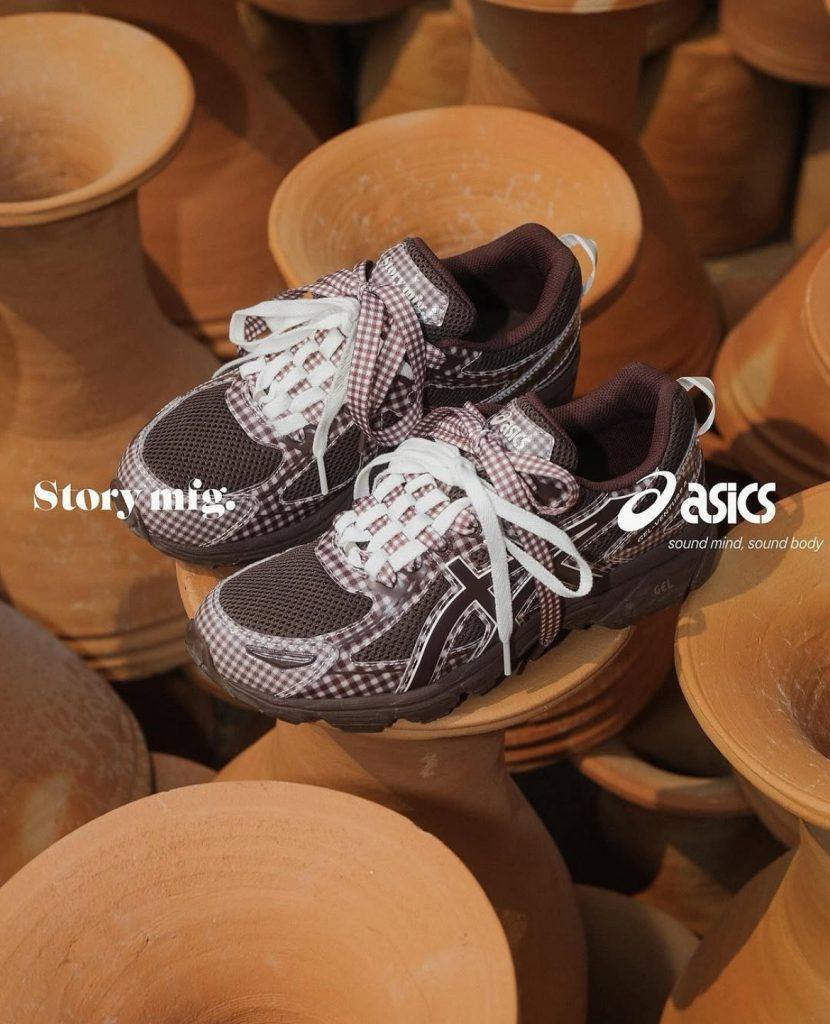 Prima collaborazione riuscita per il marchio etico britannico Story mfg., che applica il suo approccio sostenibile alla Asics Gel-Venture 6. Disponibile in lavanda o marrone, la sneaker a motivo vichy celebra lo spirito outdoor come passeggiate ed escursioni. La campagna visiva che accompagna il lancio riflette lo spirito comunitario e inclusivo dei fondatori, Saeed e Katy Al-Rubeyi, dando visibilità a profili raramente rappresentati nelle pubblicità di moda. Una scelta audace, ma che sembra funzionare: il modello è già sold-out sul sito di Story mfg., in attesa del lancio globale previsto per il 18 aprile presso rivenditori selezionati.