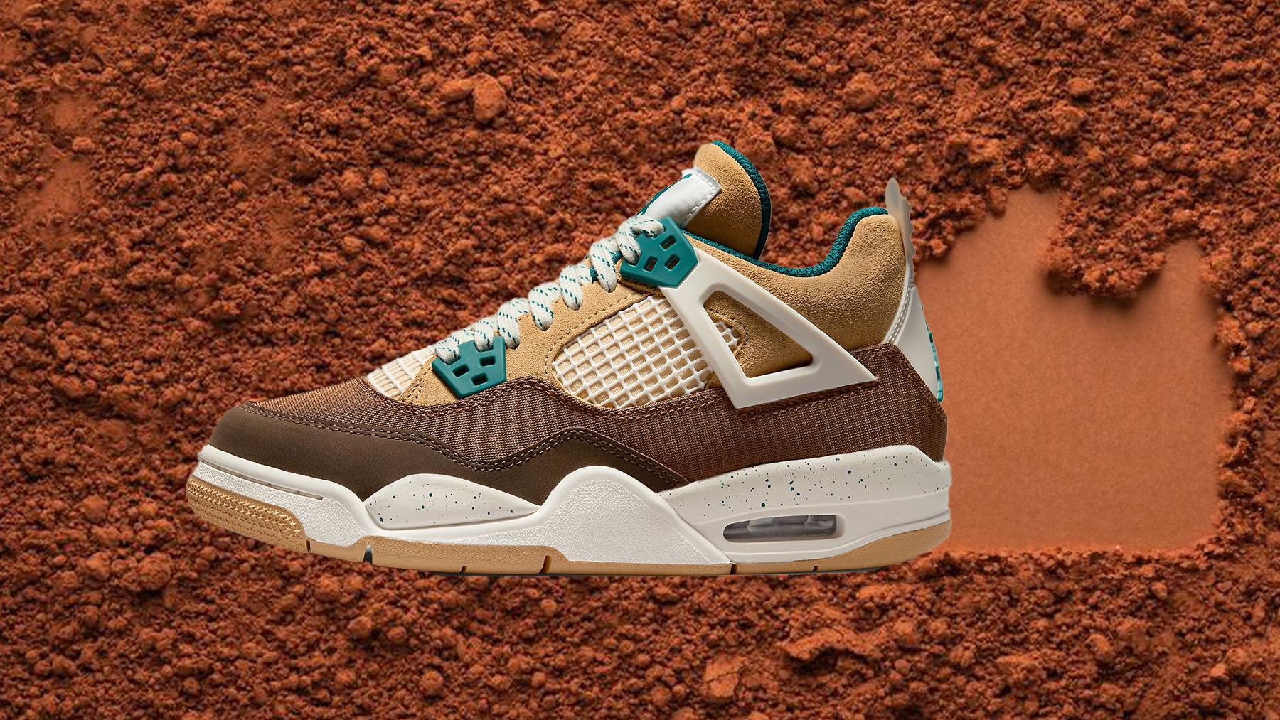 Ecco un paio di sneakers che non lascerà indifferenti questo autunno! Le Air Jordan 4 sono di ritorno nella versione GS Cacao Wow. Base color cioccolato, inserti color nocciola e dettagli color turchese. 🍫