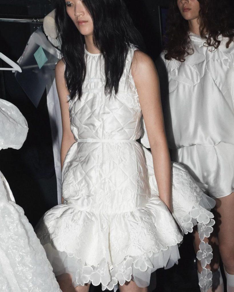 “Hana-Bi” – fuochi d’artificio in giapponese – è il titolo di questa collezione anniversario concepita come una retrospettiva poetica in cui si intrecciano gli elementi emblematici degli ultimi dieci anni con proposte inedite dal sapore contemporaneo. In una palette immacolata di bianchi e argenti, Cecile Bahnsen prosegue la sua esplorazione di un guardaroba “everyday couture”, leggero, etereo e sempre sofisticato.
