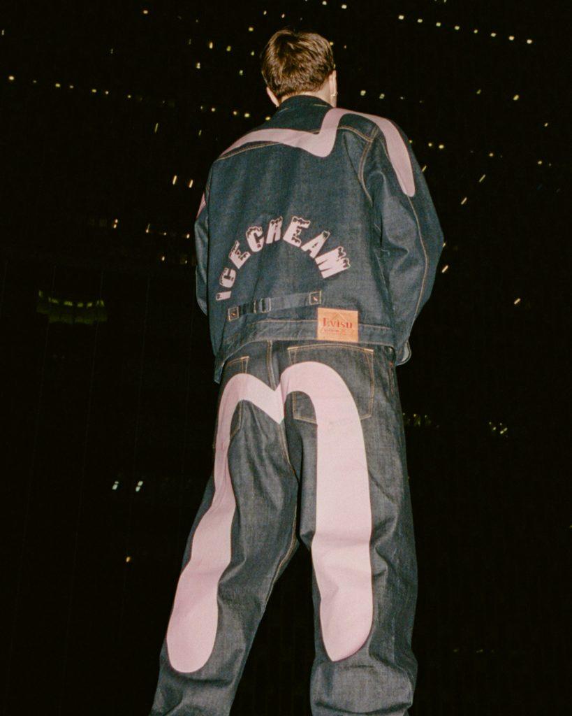 Per questa collaborazione, i loghi iconici dei due marchi si fondono: il gabbiano di Evisu incontra il Running Dog di Icecream, creando un nuovo emblema ibrido che riflette entrambi gli universi. Il cuore pulsante di questa capsule è il denim, sublimato in pezzi selvedge, le tele giapponesi con bordi a cimosa, sinonimo di qualità e know-how artigianale di fama mondiale.