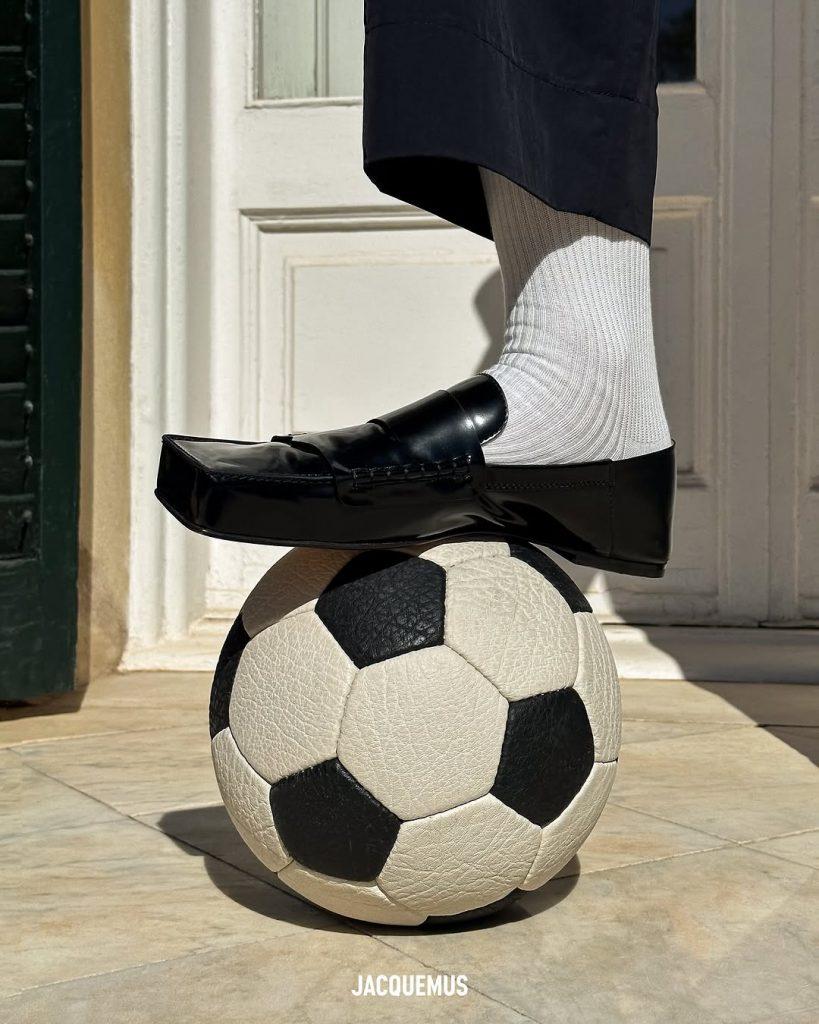 Anche le case di moda più prestigiose si stanno appropriando dell’estetica degli scarpini: durante la sfilata Primavera/Estate 2025, i modelli Louis Vuitton hanno sfilato su un prato a scacchi, indossando abiti ispirati allo stile preppy e sneakers Footprint. Acne Studios, invece, recentemente ha collaborato con Kappa su una capsule collection ispirata al calcio, che include naturalmente una reinterpretazione dello scarpino.