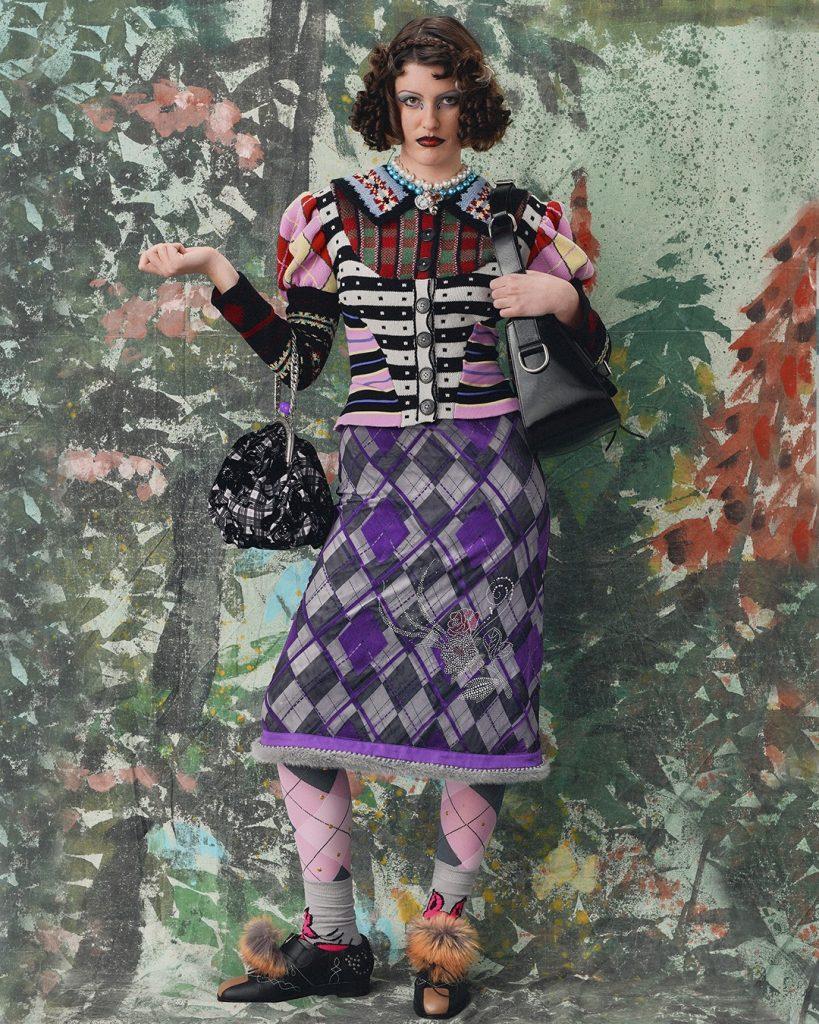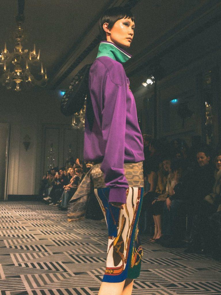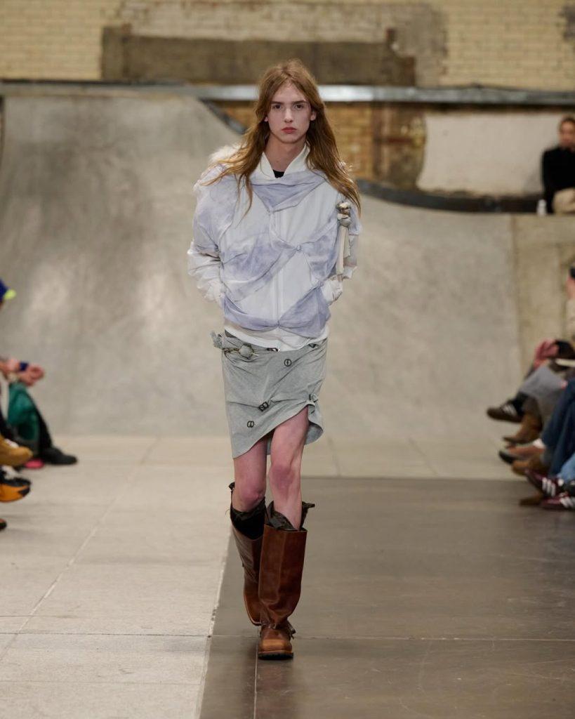 Da Chopova Lowena emergono influenze stratificate, a metà tra il regency core e una mattinata su un green impeccabile. Le gonne plissettate, firma del duo, restano centrali, ma dietro l’estetica si cela un approccio profondamente circolare, con il riciclo di pezzi provenienti da collezioni precedenti.
