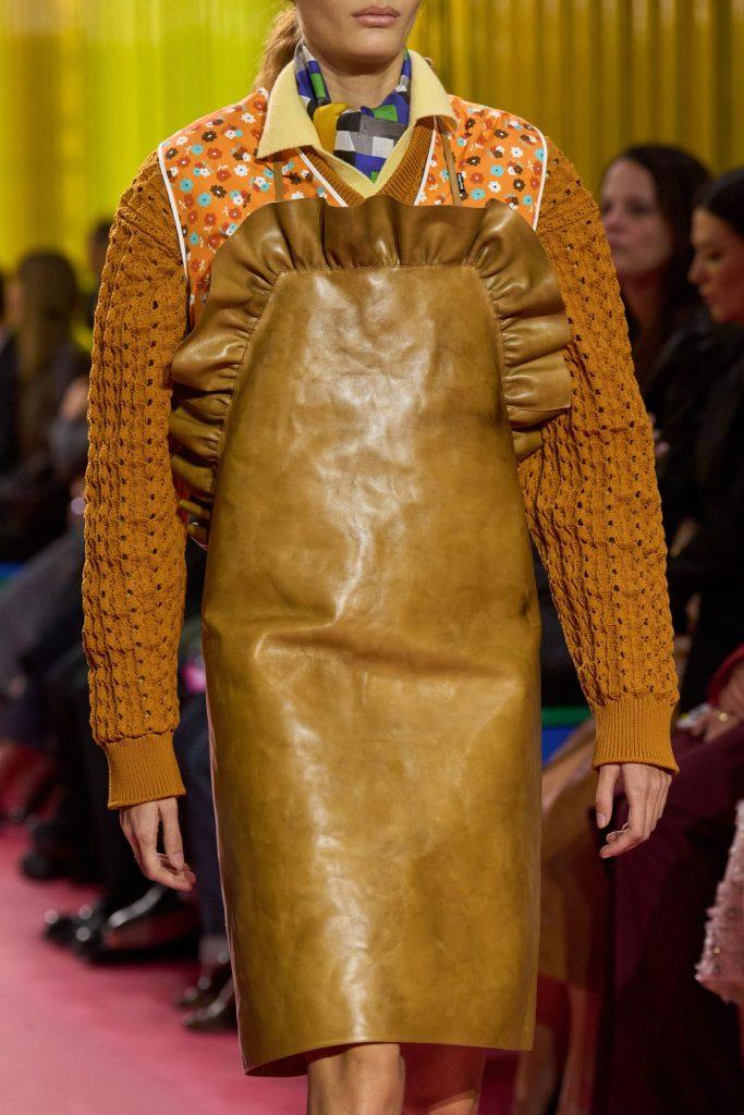 Il ritorno del grembiule e della divisa da lavoro non è un’esclusiva dell’universo di Miuccia Prada. Già prima della Fashion Week di Parigi, altri brand avevano rilanciato in chiave contemporanea questi capi funzionali. A Londra, Ashley Williams li reinventa in chiave pop e girly, accostandoli ad altri elementi dell’estetica da “signora”, come le scarpe ortopediche.