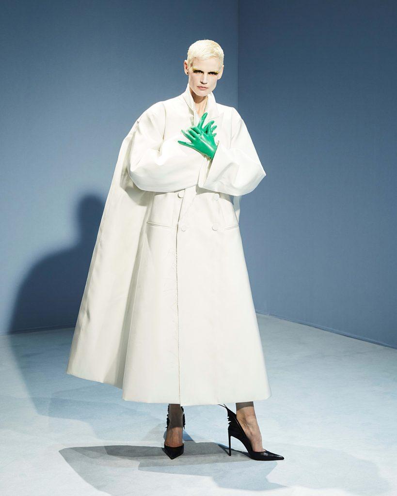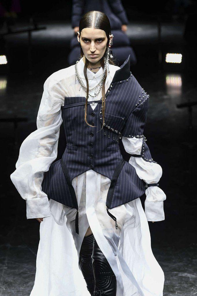 La prima ad accettare la sfida è stata la fondatrice di Sacai, che decide di mixare couture e sportswear, moltiplicando le ibridazioni in omaggio all’opera di Gaultier. L’artista giapponese con i codici cari al marchio: t-shirt a righe destrutturate, corsetti fusi con parka tecnici, sovrapposizioni audaci. Ispirandosi ai look di Gaultier indossati da Björk e Madonna, Chitose Abe firma un debutto molto concettuale, anche se piuttosto distante dall’idea di couture tradizionale. Si tratta comunque di un primo tentativo piuttosto promettente, ancorato a un moda contemporanea consapevole, grazie anche all’utilizzo dell’upcycling.