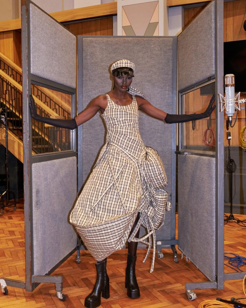 Myah, rivelata grazie alle sue collaborazioni con Erykah Badu, ha fatto parlare di sé con un look indimenticabile indossato ai Billboard Awards: una booty suit seconda pelle che rende omaggio alla Venere di Willendorf. Myah si distingue per il suo sorprendente lavoro sul volume e sulla materia. Le silhouette vengono trasformate da una varietà di texture che ne cambiano l’aspetto e il peso, dando vita a una ricerca scultorea che fa dialogare corpo, memoria e simboli.