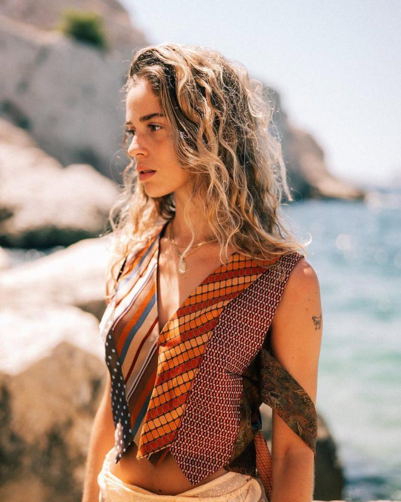 Ogni pezzo è unico, frutto di un’artigianalità e una visione sostenibile. Lucie non si limita a creare, ma condivide la propria passione attraverso workshop partecipativi, tour nelle friperie di Marsiglia e persino team building incentrati sulla moda responsabile.