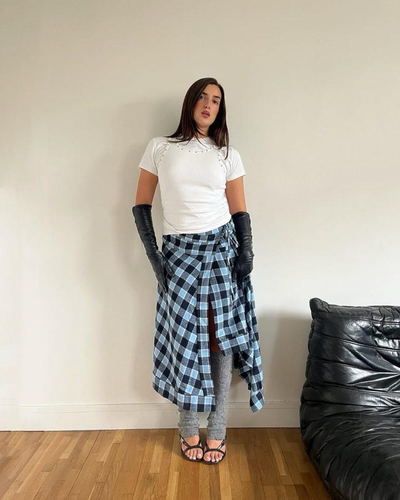Lo scialle deve essere a motivi — vichy, tartan, quadri — e realizzato con materiali nobili come lana o alpaca. Si indossa sopra un cappotto in una giornata fredda e asciutta, o su un blazer in pelle per un mix di stili.