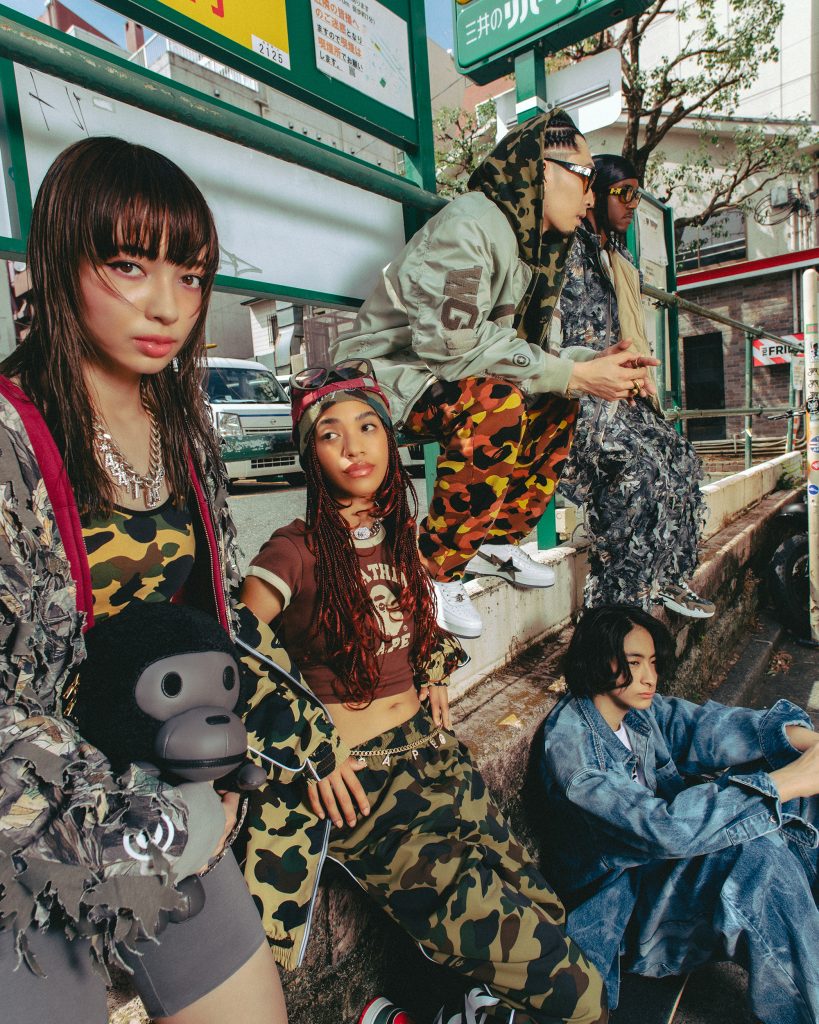 Con un’estetica quasi psichedelica, la stampa camouflage di BAPE si presenta più grafica che militare, incarnando una visione ibrida, tra cultura giapponese, hip-hop americano e universo Y2K.