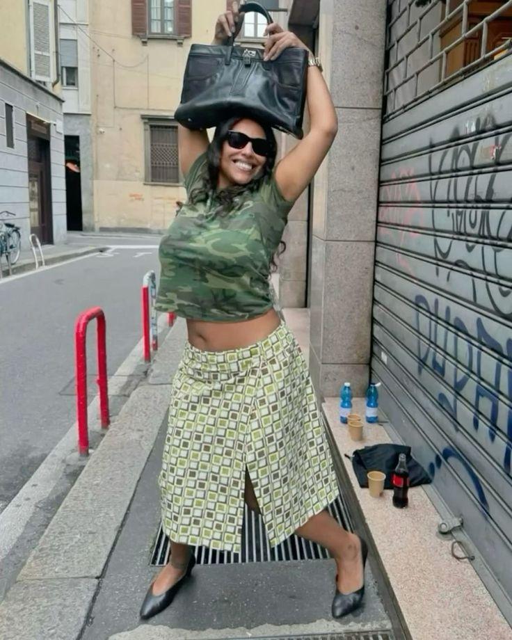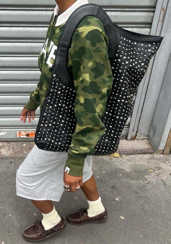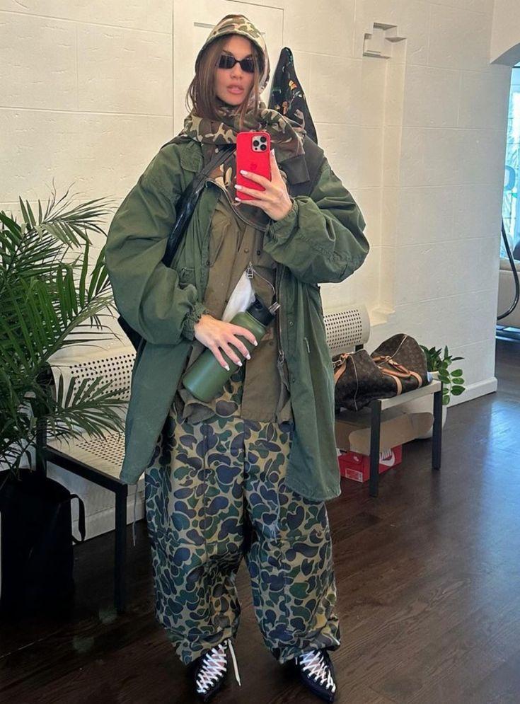 Lontano dalle sue radici esclusivamente militari o streetwear, la stampa camouflage ormai è ovunque. L’abbiamo vista sulle passerelle autunno-inverno 2025 di Louis Vuitton e da Blue Marble, dove si libera dai classici codici bellici. Sui social è la stampa preferita delle it girls, che la usano a piccoli tocchi: su una borsa Diane V. come fa la cantante Mélissa Bon, su una t-shirt come Paloma Elsesser o con uno short cargo come la stilista Sierra Rena.