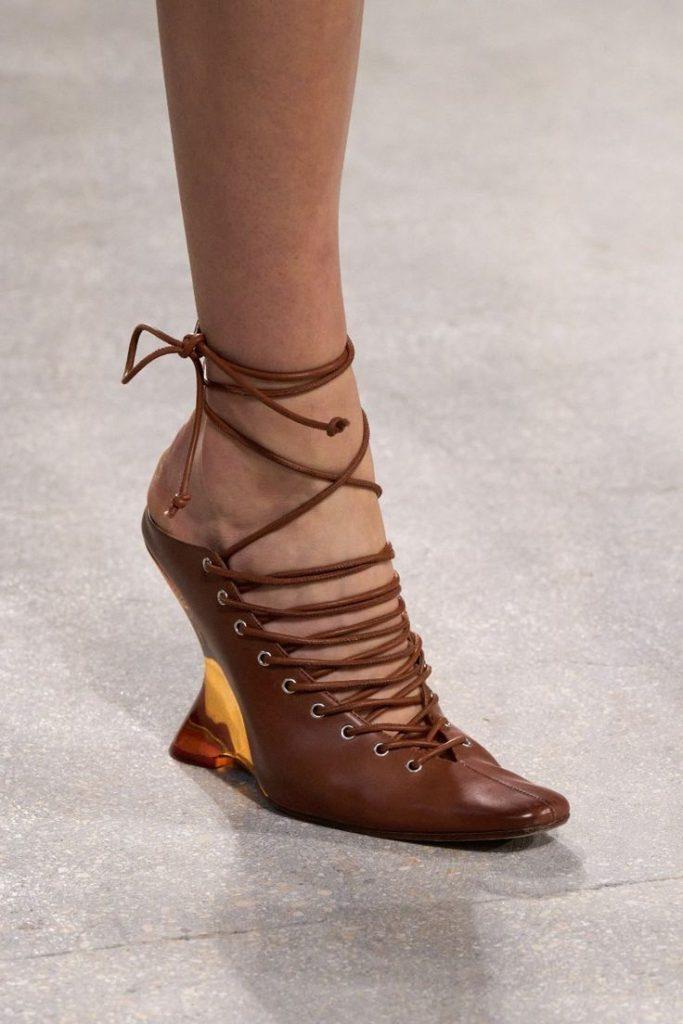 Questa stagione il tacco curvo si impone come uno dei dettagli più presenti nel guardaroba femminile. In passerella viene sfoggiato in tutte le sue forme: scultoreo, asimmetrico, tondo.