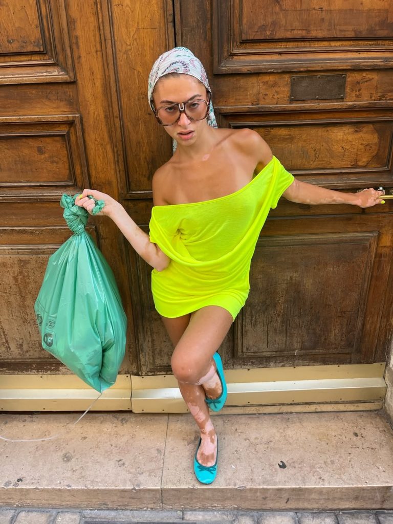 L’emergere dell’espressione “cunti cunta”, coniata da Loeva, cofondatrice dei JUDE Party, sintetizza un nuovo modo di interpretare il neon. Un’attitudine in netto contrasto con la clean girl. Abiti asimmetrici giallo acido, mini-shorts fluo esibiti con orgoglio, costumi da bagno effetto Stabilo, gioielli XXL con un’estetica che sembra uscita direttamente dagli anni ‘80. In questo contesto, il neon non è un semplice dettaglio, ma un mezzo per giocare con i limiti del kitsch e affermare un’identità vistosa e coloratissima.