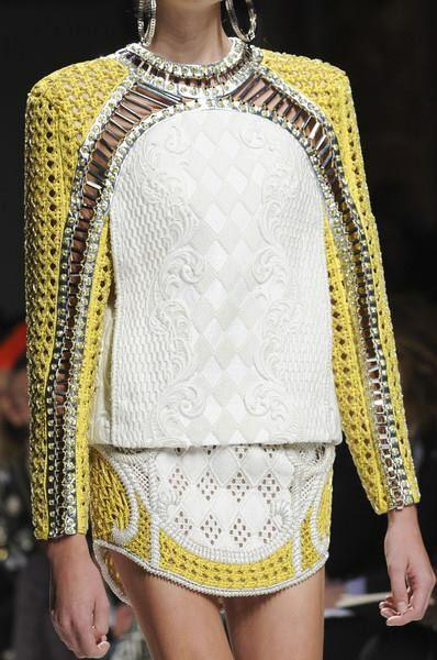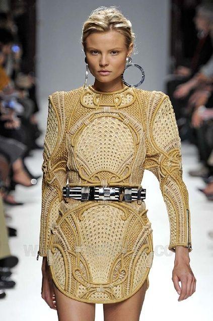 Negli anni 2010, le sue silhouette si distinguono per le spalle larghe, le vite marcate, i dettagli ricamati. Un’opulenza calibrata che trasforma ogni abito in una messa in scena della femminilità. Rousteing non crea capi: disegna armature contemporanee.