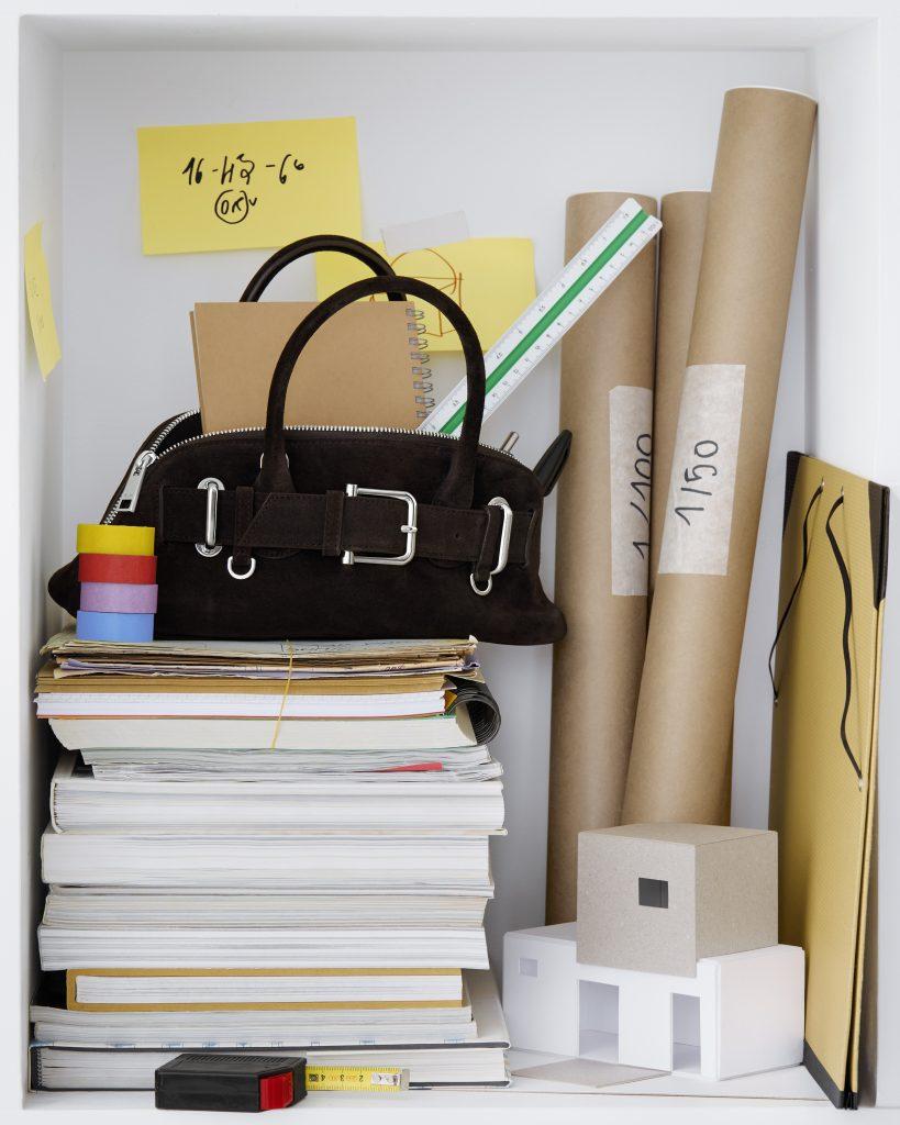 Gli scatti di Pierre Tostain si orientano invece verso una dimensione ludica: le borse vengono fotografate su sfondi colorati, insieme a oggetti del quotidiano come la carta di una caramella o una pallina di plastica. Un modo per ricordare che, pur essendo oggetti di design, le borse restano comunque accessori destinati all’uso quotidiano, con tutte le imperfezioni che questo comporta.