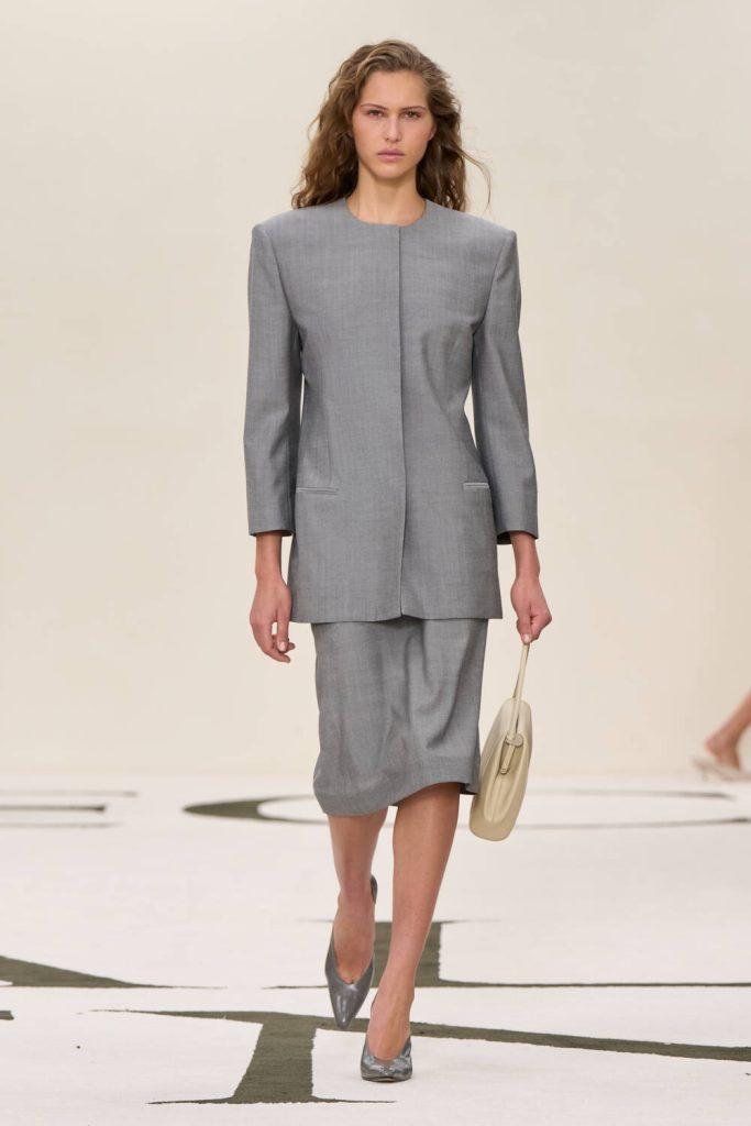 Da Calvin Klein, il grigio diventa materia e si trasforma in tailleur dritto e sobrio da valorizzare con tonalità più vivaci. E per chi osa osare, queste tonalità minimaliste funzionano come accenti visivi per esaltare un look sobrio: una pochette lavanda su un denim grezzo, una blusa senape sotto una giacca nero profondo, una camicia bianco gesso sotto un cappotto color cioccolato. Un guardaroba che afferma un minimalismo cromatico, discreto ma sofisticato.