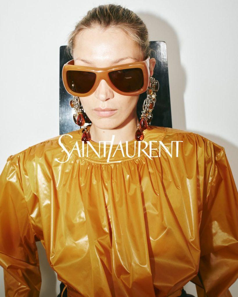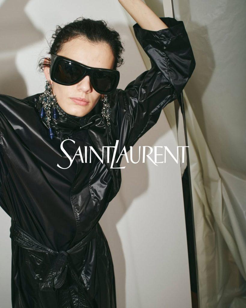 Dopo i primi segnali della scorsa stagione, l’orientamento verso una silhouette più strutturata trova piena conferma in Saint Laurent, che ha chiuso la giornata con 18 look in total leather: trench chiusi fino al collo, chiodi XXL, gonne dritte, maniche a sbuffo e fiocchi monumentali.
