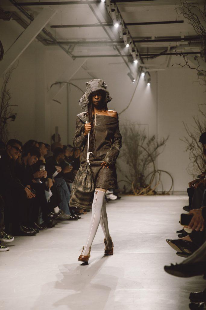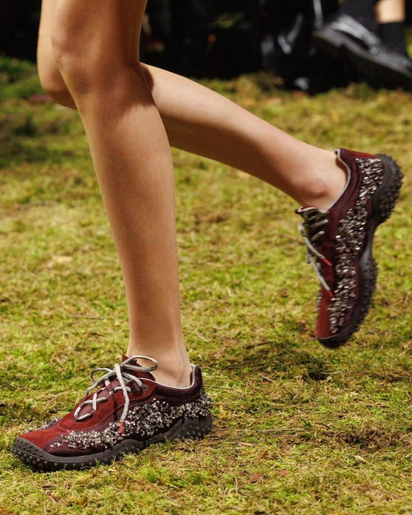 Lo stilista ha scelto la foresta come punto di partenza per questa sfilata. Uno spazio ibrido tra rifugio e minaccia, dove l’identità può esprimersi liberamente, lontano dalle convenzioni sociali. In questo scenario fortemente simbolico, le sneakers raccontano proprio questa ambivalenza.
