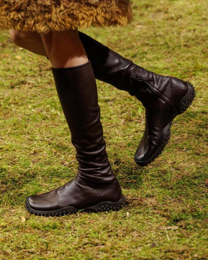 Oltre venticinque anni dopo, torna in scena in diverse versioni: sneakers, mules e persino stivali. La nuova linea oscilla tra un’estetica gorp core e uno spirito volutamente quirky. Alcuni modelli ricordano la silhouette iconica delle Prada America’s Cup. Sui lati, piccoli dettagli gioiello ammorbidiscono l’insieme e aggiungono un tocco femminile inatteso.