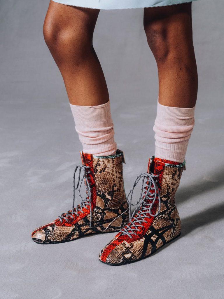 Il marchio utilizza questa idea come filo conduttore per affermare la propria volontà di accompagnare ogni momento della vita. Una filosofia che emerge in particolare nelle calzature, pensate per adattarsi sia alle occasioni speciali sia alla quotidianità. Il marchio propone così sneakers apprezzate per il loro comfort in versioni alte, come l’emblematica Mexico 66 reinterpretata con un’estetica ispirata al boxing e ricoperta di stampe rettili, uno dei motivi più forti della stagione. Un modo di attraversare la città con pezzi pratici ma sofisticati. I modelli giocano inoltre con diverse influenze stilistiche: colori vivaci, tonalità pastello e motivi floreali si combinano per creare look che evocano al tempo stesso l’energia dell’adolescenza e l’eleganza delle donne più mature. Da questo incontro inatteso nasce una sottile malinconia, come se epoche e generazioni diverse entrassero in dialogo tra loro.
