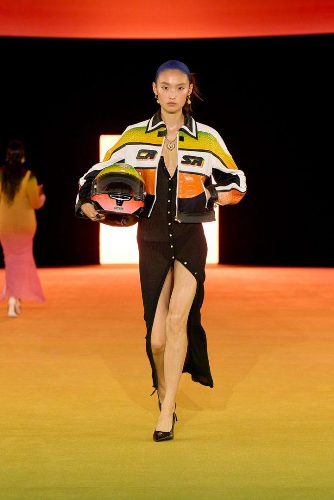 L’estetica racing non è una novità nel mondo del lusso. Già nei primi anni 2000, case di moda come Chanel, Dsquared2 e Dolce & Gabbana portavano in passerella i codici visivi dei circuiti come tute zippate, caschi sotto il braccio e bandiere a scacchi.Oggi questa eredità viene reinterpretata da una generazione di designer emergenti che reinterpretano la velocità in chiave grafica. Mowalola, ad esempio, inserisce elementi racing nelle sue collezioni sempre provocatorie. Off-White, Ferrari e Vaquera reinterpretano l’uniforme dei piloti con un approccio creativo. Il risultato? Una fusione tra nostalgia anni 2000 e ricerca di performance.