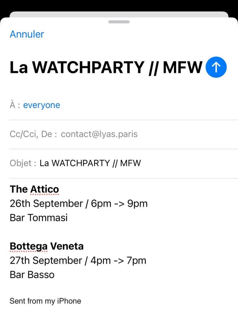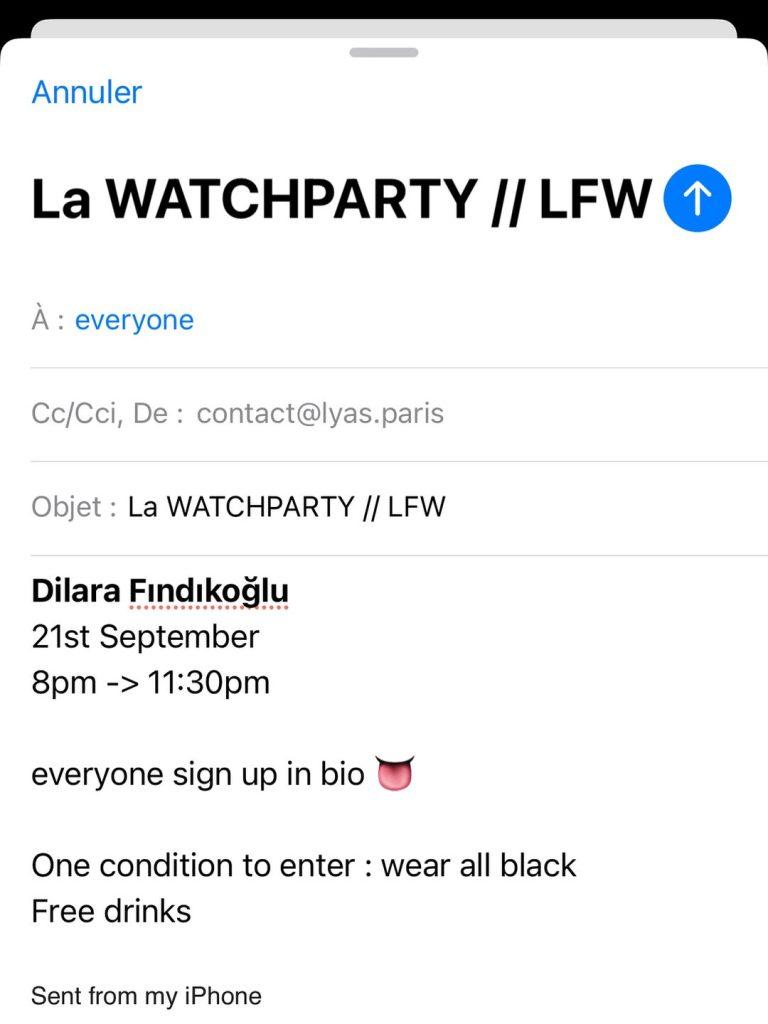 La prima Watch Party ufficiale si tiene a Londra, subito dopo la New York Fashion Week. Ingresso gratuito, drink inclusi. Unico intoppo: la legge britannica sull’alcol impone RSVP obbligatorio. Un dettaglio che ha fatto sorgere qualche perplessità, ma che lo stesso Lyas ha saputo risolvere e far dimenticare rapidamente.