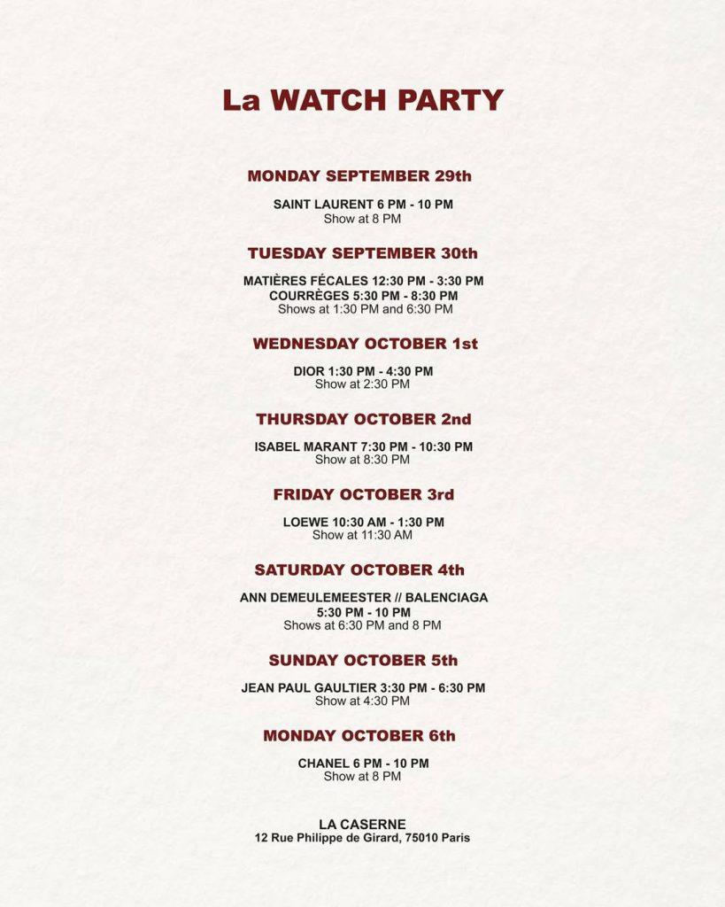 Le date parigine non sono ancora state annunciate, ma saranno numerose. Per non sapere assolutamente tutto su questo fenomeno che sta rivoluzionando il mondo della moda, basta seguire la pagina Instagram dedicata: @lawatchparty.